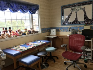 昔は、子供が喜ぶおもちゃをや絵本をたくさん用意して、楽しんでもらっていましたが。今は、待合室からおもちゃや本棚を廃止して、大きな水槽とモニターを設置しました。大きい水槽もとても良い感じです。DVDで「トムとジェリー」などを流しているせいかとても待合室が静かになりました。いろいろな「お知らせ」もモニターで放映しています。おもちゃや本は、本当はあった方がお子さんは喜ぶでしょうが、接触感染を考えてあえて外すことにしました。